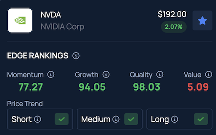 Benzinga Edge Stock Rankings show Nvidia in the 94th percentile for Growth and the 98th percentile for Quality. Click here to see how the stock stacks up against its peers and competitors.