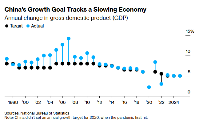 Weak spending, a property slump, and declining birth rates have weighed on China's economy. US tariffs have added pressure to China's export-reliant economy, the second largest in the world at $20 trillion.