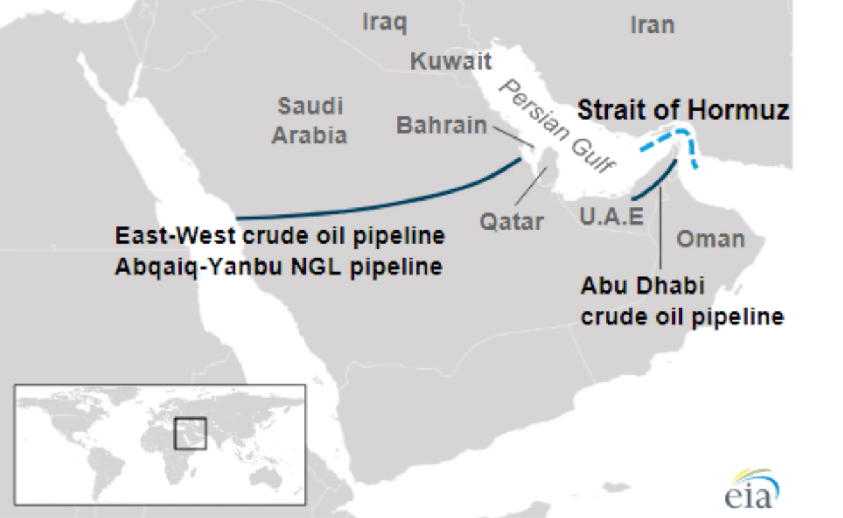 The other offset is a UAE pipeline into the "good" side of the Strait of Hormuz, ending in Fujairah, but this can only be increased by just 0.5 million bpd.